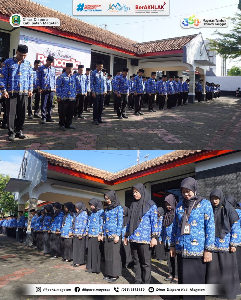Dalam rangka memperingati Hari Kesaktian Pancasila Tahun 2025, Dinas Pendidikan, Kepemudaan, dan Olahraga Kabupaten Magetan menyelenggarakan upacara peringatan pada Rabu, 1 Oktober 2025, bertempat di halaman kantor Dikpora.