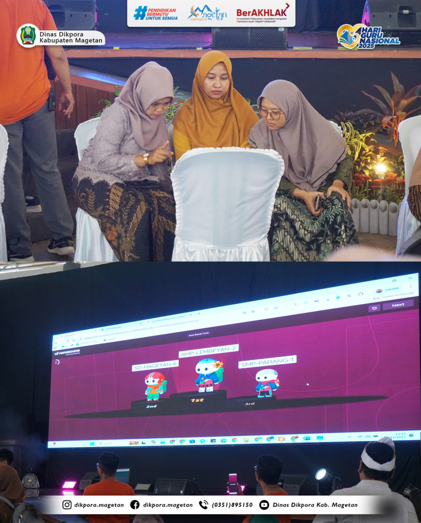 Suasana semakin meriah dengan berlangsungnya Lomba Cerdas Cermat Guru yang diikuti dengan antusias oleh para pendidik. Selain kompetisi, kegiatan ini juga memperkuat kebersamaan dan semangat kolaborasi antar guru. Kegiatan ditutup dengan penyerahan penghargaan kepada guru dan kelompok terbaik oleh Kepala Dinas Dikpora Magetan.