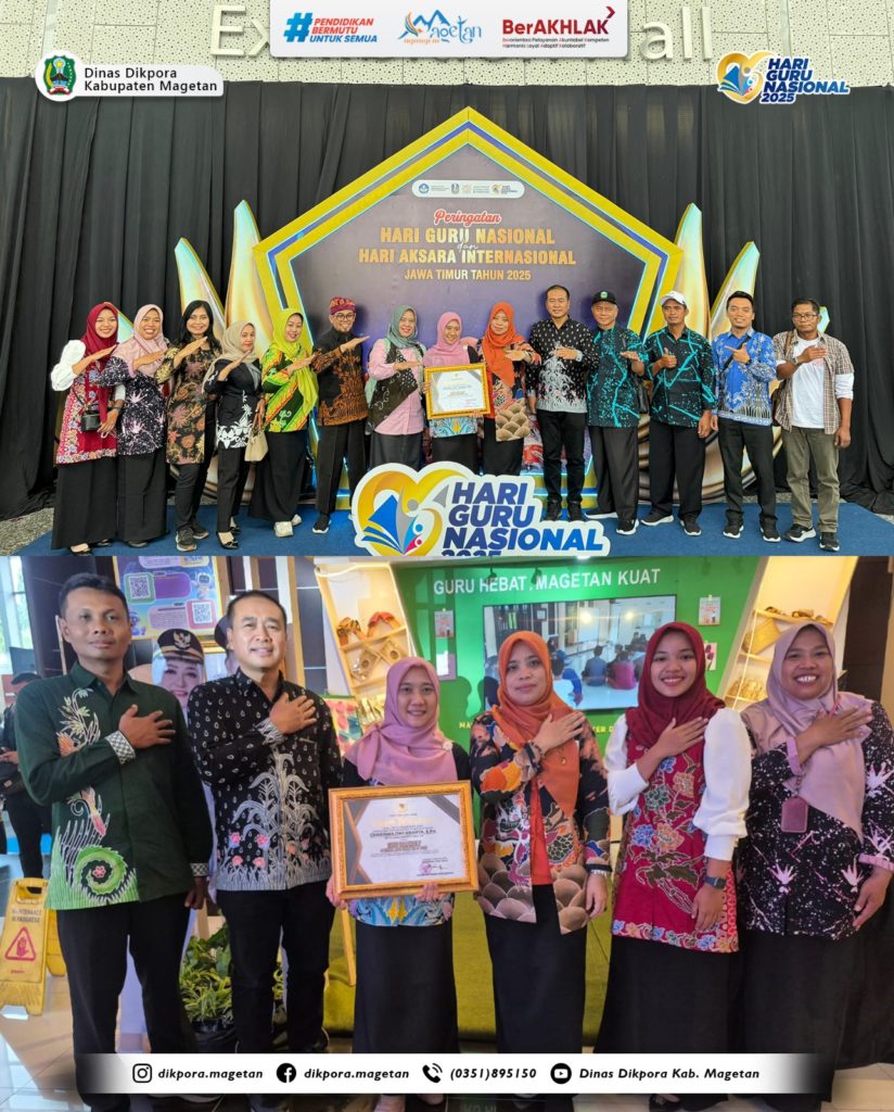 Surabaya, 1 Desember 2025, Dinas Pendidikan, Kepemudaan dan Olahraga (Dikpora) Kabupaten Magetan mengikuti rangkaian kegiatan Hari Guru Nasional (HGN) dan Hari Aksara Internasional (HAI) Tahun 2025 tingkat Provinsi Jawa Timur yang digelar di Grand City Mall Surabaya. Kegiatan ini turut dihadiri oleh Wakil Bupati Magetan sebagai bentuk dukungan terhadap peningkatan mutu pendidikan di daerah.