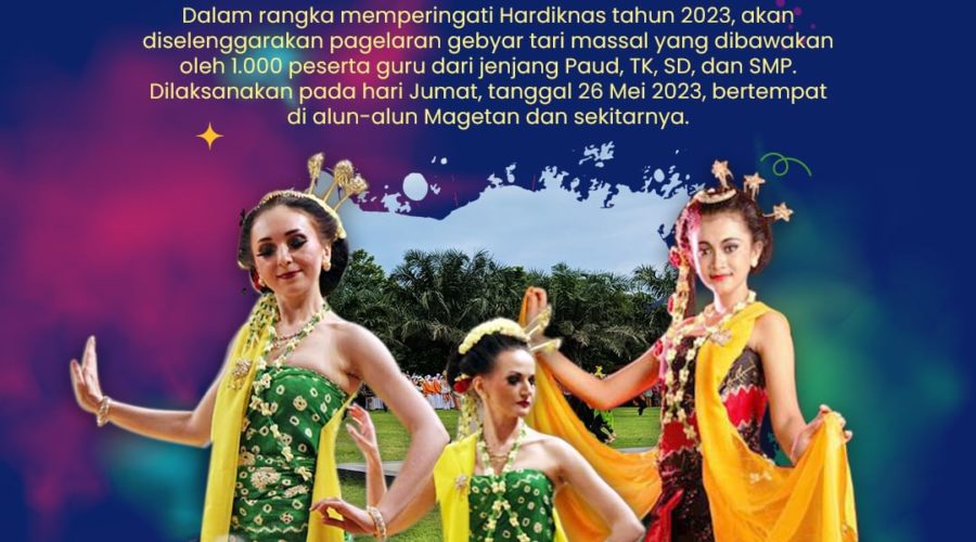 Jangan lupa datang dan saksikan Gebyar Tari Massal dalam rangka Puncak Perayaan Hari Pendidikan Nasional tahun 2023 pada hari Jum’at, 26 Mei 2023, pukul 15.00 …